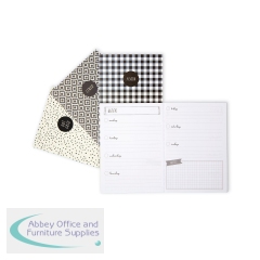 Pukka Pads Carpe Diem Notebook Monochrome A6 (Pack of 4) 9366-CD. Size: A6 (105 x 148mm). 32 pages (each book). Quality 80gsm paper. Notebook types: x1 Perpetual weekly planner; x1 Lined; x1 Dot grid; x1 Plain. Wire binding allows notebook to lie flat.