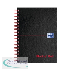Black n\' Red Wirebound Notebooks. Stylish functional notebooks with hard backed laminated Black covers and Red wire binding. Size A6 148x105mm. 140 pages. Ruled Feint with perforated sheets. Pack 5.