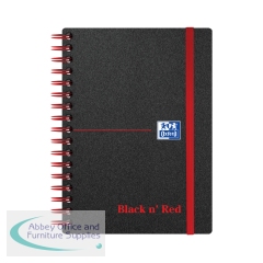 Black n\' Red polypropylene Elasticated Notebook. Wirobound notebook with durable polypropylene cover and colour co-ordinated elastic closure. 140-pages. Ruled and Perforated. A6. Pk 5.