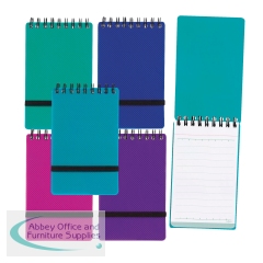 Snopake NoteGuard Executive Note Pad. High quality wiro bound Notepads with rigid polypropylene covers in vivid Electra colours. Elasticated closure. Micro-perforated. 60 sheets ruled feint with title strip. 76x127mm (5x3 inches).