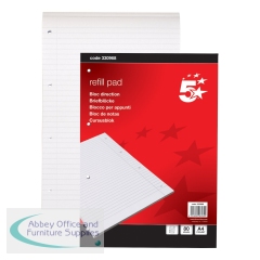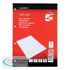 5 Star Office Refill Pad Headbound 70gsm Ruled Margin Punched 4 Hole 160pp A4 Red/White (Pack of 10). Refill Pad. 160 Page. 70gsm. 80 Sheets. Ruled and Margin. Feint Ruled and Margin. Punched 4 holes. Pack of 10.
