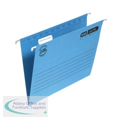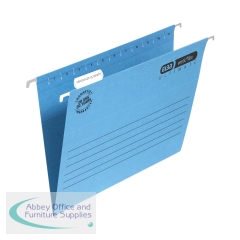 Elba Suspension File Manilla A4 Blue (Pack of 25) 100331149. Reinforced manilla suspension files. Strong 240gsm reinforced board. V shaped base. Size: A4. Colour: Blue. Pack of 25.