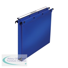 Elba Vertical Foolscap Suspension Files PP Blue (Pack of 25) 100330370. Polypropylene suspension files for durable filing. Reinforced base for durability. V shaped base. Size: Foolscap. Colour: Blue. Pack of 25.