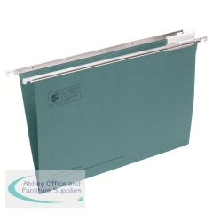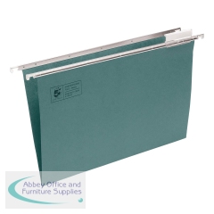 Elba Ulti Vert Suspension File 30mm FC Green (Pack of 50) 100331114. Reinforced manilla suspension files. 30mm capacity holds up to 300 sheets. Strong 240gsm reinforced board. Size: Foolscap. Colour: Green. Pack of 50.