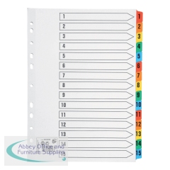 KF01520 - Q-Connect 1-15 Index Multi-punched Reinforced Board Multi-Colour Numbered Tabs A4 White KF01520