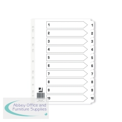 Q-Connect A4 1-50 Mylar Index (Pack of 10) KF97057Q. These Mylar-reinforced index dividers are made from sturdy manilla, the tabs are coated for long-lasting durability and they are pre-printed 1-50. White.