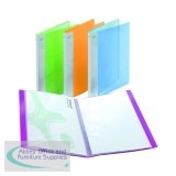Rapesco Display Book 20 Pocket Assorted. Display up to 20 sheets. Full length spine label. Clear pockets designed not to lift off print. Polypropylene covers in bright aqua blue lime ruby and purple.