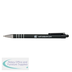 5 Star Office Retractable Ball Pen Soft Grip Medium 1mm Tip 0.5mm Line Black (Pack of 12). Soft rubber barrelled retractable ballpoint pen with metal point cone. Cushioned rubber barrel, gripping rings for comfortable writing. Long lasting black ink.