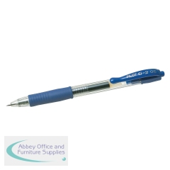 Pilot G2 Retractable Refillable Rollerball Pen. Gel ink rollerball offers exceptionally smooth writing and features a rubberised grip to alleviate writing fatigue. Medium 0.7mm. Colour: Blue. For refills see code PI16328.