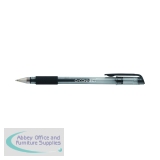 Retractable, Flexigrip gel pen. Textured grip and full-length rubber barrel. Smooth gel ink flow with a 0.7mm medium point. Stainless steel tip for a stylish appearance. Barrel colour: Grey. Ink colour: Black. Pack of 12.