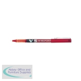 Pilot V5 Needle Tip Rollerball Pen. Pure liquid ink disposable pens for smooth writing with no skipping or blobbing. Unique ink feed system gives constant line width and greater writing distance. Line width 0.3mm. Ink Colour: Red.