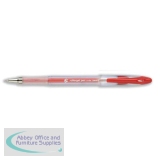 FS396802 - 5 Star Office Roller Gel Pen Clear Barrel 1mm Tip 0.5mm Line Red (Pack of 12)