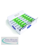 KOMFIGRIP Colouring Pens. 12 vibrant colours. Pressure resistant nibs. Bleed resistant on most papers. Triangular grip for correct position and comfort. Clear caps. Fine tip. Class pack tray of 300.