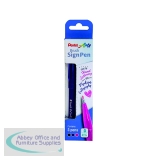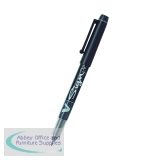 Pilot Liquid Ink Sign Pen. Medium polyacetal tip gives a line width of 0.6mm. Windowed barrel allows monitoring of ink level. This pen is air-tight and has a safety cap conforming to BS7272. Colour: Black.