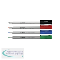 Ikon OHP Pen Non-Permanent Fine Point Assorted (Pack of 4) 7421WLT4. Non-permanent overhead projector pens. Fine tip. Secure cap to prevent drying out. Soluble water-based ink. Black, red, blue and green.