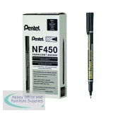 Pentel Permanent Marker Extra Fine Black (Pack of 12) NF450-A. Permanent marker with extra fine bullet tip 0.6mm line width. Robust fibre tip. For use on a variety of surfaces. 24 hour cap off time. Writes for up to 700 metres.