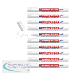 Edding 8046 Ready White Industry Pen Folding Box (Pack of 10) 4-8046049. Ready for immediate use: No shaking or pumping necessary. Precise round tip with a line width of 1-3mm. Robust and waterproof.