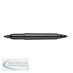 Twin-tip permanent marker. Writes on glass, plastic, fabric and paper. Quick drying ink: resists smearing. AP certified non-toxic formula. Two fine line widths: 0.9mm and 0.5mm. Secure cap. Barrel: Grey. Ink: Black. Pack of 12.