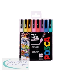 Posca PC-3M Paint Markers Fine Pastel Assorted (Pack of 8) 238212174. Bullet tip 0.9 for a 1.3mm line width. Can be overlayed when dry. Can be blended with water when wet. Lightfast and water-resistant ink. Water-based and non-toxic pigment ink.