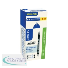 Pilot Twin Marker Permanent Marker Bullet/Chisel Tip Black Bonus Pack (Pack of 20) 3131910424789. Permanent fine labelling on paper, plastic, wood, metal, cardboard and glass. Xylene-free ink. 0.8 Bullet tip and 2mm Chisel tip. 0.4 and 0.5mm line widths.