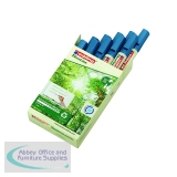 Edding 28 Ecoline Drywipe Markers (Pack of 10) Blue 4-28003. Made from 90% recycled plastic, including at least 83% post-consumer materials. Several days cap off time. Round nip with 1.5-3.0mm line width. Secure cap with clip. Ink colour: Blue.