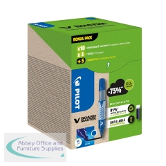 Pilot V-Board Master Drywipe 10 Markers + 10 Refills Bullet Tip Blue (Pack of 20) WLT556282. Drywipe marker pens. Erase ink easily from whiteboard surfaces with a cloth. Made with 91% recycled material. Refillable. Bullet tip.