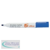 5 Star Office Drywipe Marker Xylene/Toluene-free Bullet Tip 3mm Line Blue (Pack of 12). Xylene and toluene-free. Plastic barrel. Black cap with clip.
