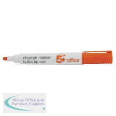 5 Star Office Drywipe Marker Xylene/Toluene-free Bullet Tip 3mm Line Red (Pack of 12). Xylene and toluene-free. Plastic barrel. Black cap with clip.