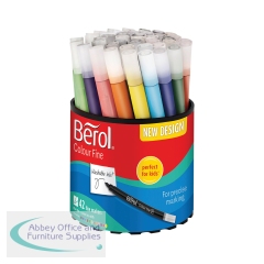 Berol Colourfine Pens Assorted (Pack of 42) CFT S0376490. Round ended fibre tipped pens suitable for colouring large areas or creating bold illustrations. Ink can be worked with a wet brush to create a subtle wash effect. Supplied in a tub of 42 pens.