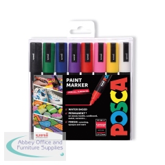 Posca Uni Posca PC-5M Paint Marker Bullet Assorted (Pack of 8) 153544843. Permanent paint markers for multiple surfaces. Medium 1.8-2.5mm bullet tip. Water-based and non-toxic pigment ink. Lightfast and water-resistant ink.