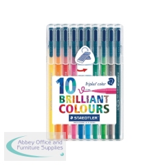 Stabilo Trio A-Z Felt Tip Colour Pens Classpack Gratnell Tray Assorted (Pack of 144) F378/144-04. Robust Fine tip for drawing and writing. Line Width: 0.7mm. Ergonomic grip zones to encourage correct grip. Washable ink for easy removal from hands/clothes.