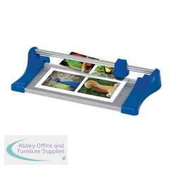 A4 photo and paper trimmer designed for home and office trimming of digital photos and paper. Guidelines on baseboard makes cutting photos to standard sizes quick and easy. Capacity 5 sheets. 315mm cutting length.