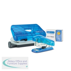 Rapesco 2 Hole Punch Mini Stapler and 26/6mm Staples Set Transparent Blue. Hole punch - 15 year guarantee. Uses standard 26/6mm, 24/6mm staples. Stapler - 3 year guarantee. Use Rapesco staples. Capable of punching/stapling up to 12 sheets of 80gsm paper.
