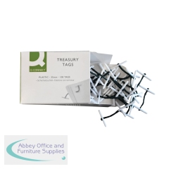 Q-Connect Treasury Tags. An economical way of securely holding small or large quantities of punched papers together. Manufactured from cotton cord with plastic end tags. 25mm.