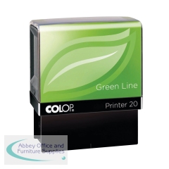 Colop Green Line self inking word stamp made from over 65 percent recycled materials. Gives a 38x14mm size imprint. Prints text in red to highlight your message. Ink pad gives thousands of sharp impressions. COPY.
