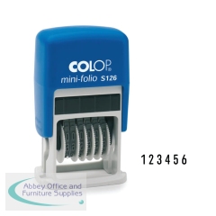 Colop S126 Numberer 4mm Self Inking Stamp 104941. 4mm 6 Band numbering stamp. Each band prints 0-9. Compact design. Self-inking - fitted with a replacable ink pad. Replacement ink pads available separately.