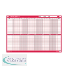 Sasco Staff Planner Mounted 2027 2410299. Year to view. Space for up to 40 names. Ideal for tracking staff holidays, projects and deadlines. Laminated. Mounted. Supplied: Wet wipe marker pen, pen clip, stickers and dots in 4 colours.