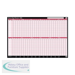 Sasco Day Planner Mounted 2025 SY1076125. Days and months run across the top. 40 index spaces for staff or projects. Laminated finish to write on and wipe off. Mounted on a rigid backing. Ideal for planning 365 days of the year. Dimensions: W915 x H610mm.