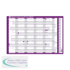 Sasco Academic Year Planner Mounted 2025-26 SY1075325. Days across the top/months down the side. UK and ROI bank holidays. Laminated finish to write on/wipe off. Mounted hard backed. Dimensions: W915 x H610mm. Delivered folded.
