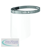 Superguardpro Visor White (Pack of 4) WX07663. Soft 25mm elastic headband for universal fitting. Soft latex-free foam headpad for increased comfort. Lightweight and frameless. Fog resistant. Made from optically clear PET. Colour: White. Pack of 4.