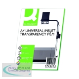 Q-Connect Universal Inkjet OHP Film. Clear A4 OHP film suitable for use in inkjet printers. Features include excellent ink reproduction good drying times and coating on one side.