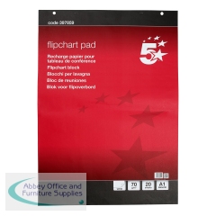 5 Star Office Meeting Flipchart Pad Perforated 20 Sheets A1 (Pack of 5). Top-quality 70gsm plain flipchart pads. 20 perforated sheets for easy tear-off. Specially coated paper to prevent ink bleeding through. Pack of 5.