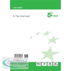 5 Star Eco Recycled Flipchart Pad Perforated 40 Sheets A1 Green/White (Pack of 5). Flipchart Pad. 40 Sheets. 70gsm. Perforated. Plain Unruled. Recycled. Punched 2 holes. Pack of 5.