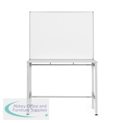 5 Star 1500 x 1200mm Mobile Double Sided Magnetic Whiteboard FS668152. Four lockable castors allow the board to be moved around easily. The cross bar stand functions as a pen shelf. Double sided, mobile and magnetic. Size: 1500 x 1200mm.