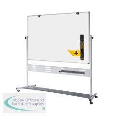 Bi-Office Evolution Magnetic Revolver Whiteboard. Ideal for training and teaching. Can be pivoted 360 degrees horizontally. Complete with accessory tray and lockable castors. 1800x1200mm.