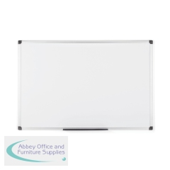 Bi-Office Drywipe Board 900x600mm MA0307170. Slim anodised aluminium frame. Matching aluminium pen tray clips onto frame. Wall fixings included.