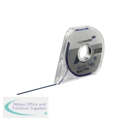 Self adhesive divider tape is a quick and precise way of marking out columns and rows to transform any whiteboard into a planner. Handy dispenser for easy application. Tape can be removed and board re-used. Tape size: 2.5mmx16m. Colour: Blue.