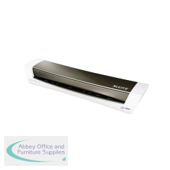 Leitz iLAM Home Office Laminator A3 Dark Grey 74401089. Laminates up to 250 micron thick pouches. Automatic shut off. Includes a free starter pack of pouches. Colour: Dark Grey.