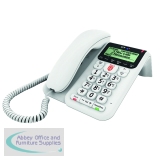 Easy to use cordless phone featuring large backlit display and big buttons with a special font ensuring high visibility. The audio boost function provides load and clear sound and the handset slides securely into the extra stable base. Colour - White.