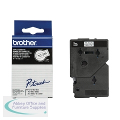 Brother P-Touch 9mm Black on White TC-291 Labelling Tape TC291. Tape cassette for Brother\'s first P-touch label printer range. Laminated to protect from extreme temperatures, abrasion, water, chemical damage. For indoor and outdoor use. Adhesive backing.